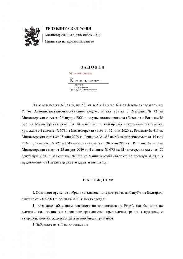 С пълния текст на Заповед РД-01-74/01.02.2021, където са описани и всички изключения от наложените мерки, може да се запознаете ТУК.